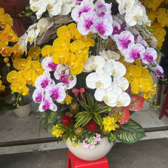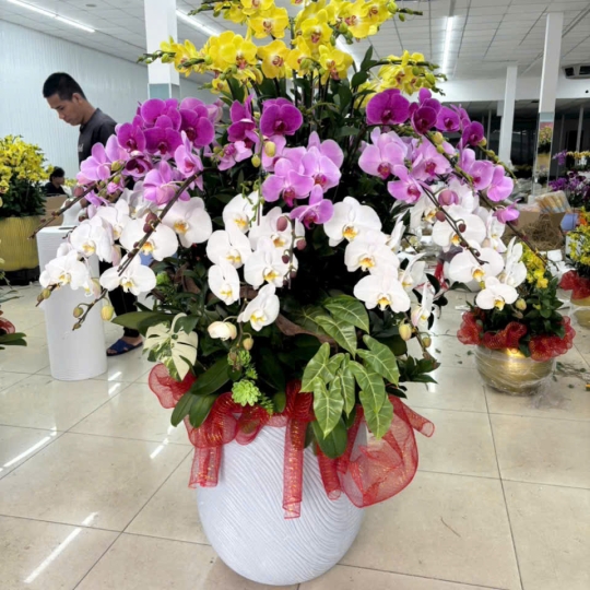 Khách hàng cũng có thể yêu cầu thiết kế chậu Lan Hồ Điệp theo số cành, màu sắc hoặc ngân sách mong muốn. Nhờ đó, mỗi sản phẩm đều mang dấu ấn riêng và phù hợp với từng nhu cầu cụ thể.